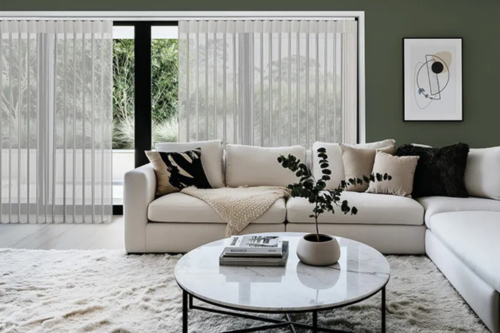 A refined vertical drapery system that combines the soft filtered light of sheers with the privacy and practicality of blinds—perfect for wide windows and sliding doors.